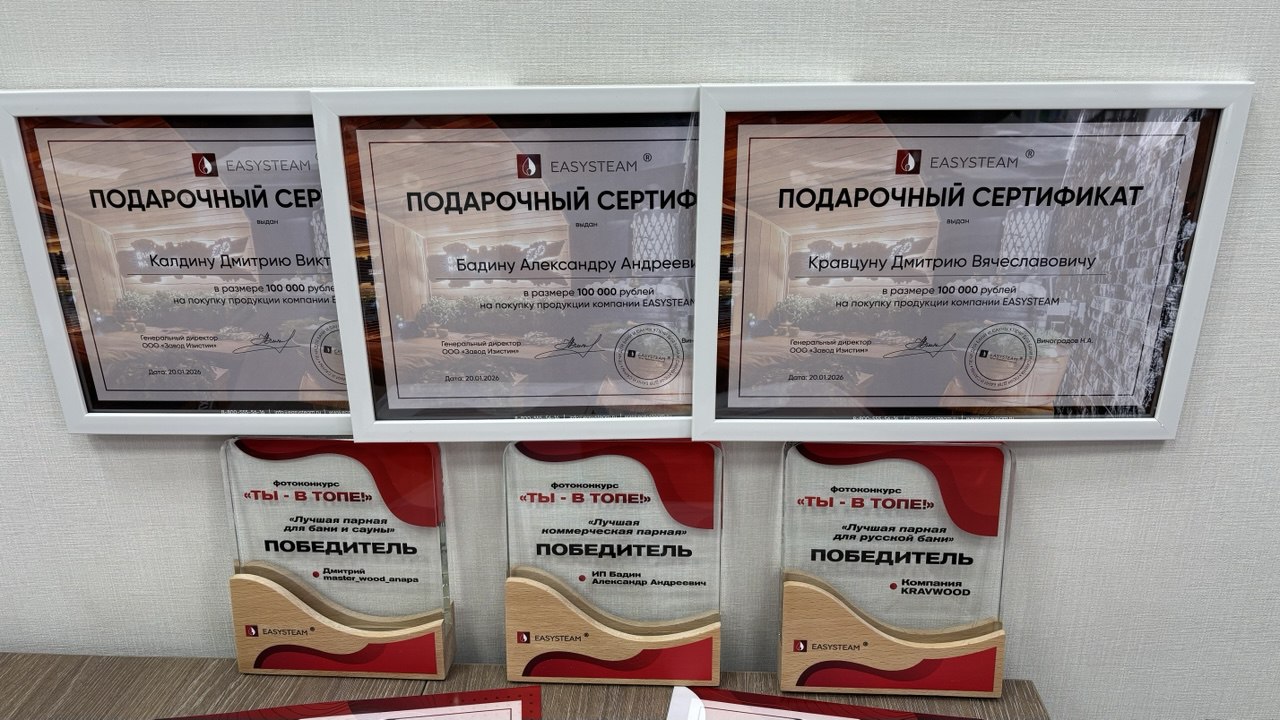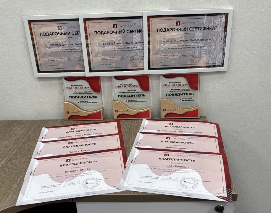 Победители получают заслуженные награды и подарочные сертификаты номиналом 100 000 рублей для приобретения товаров на сайте компании EASYSTEAM.