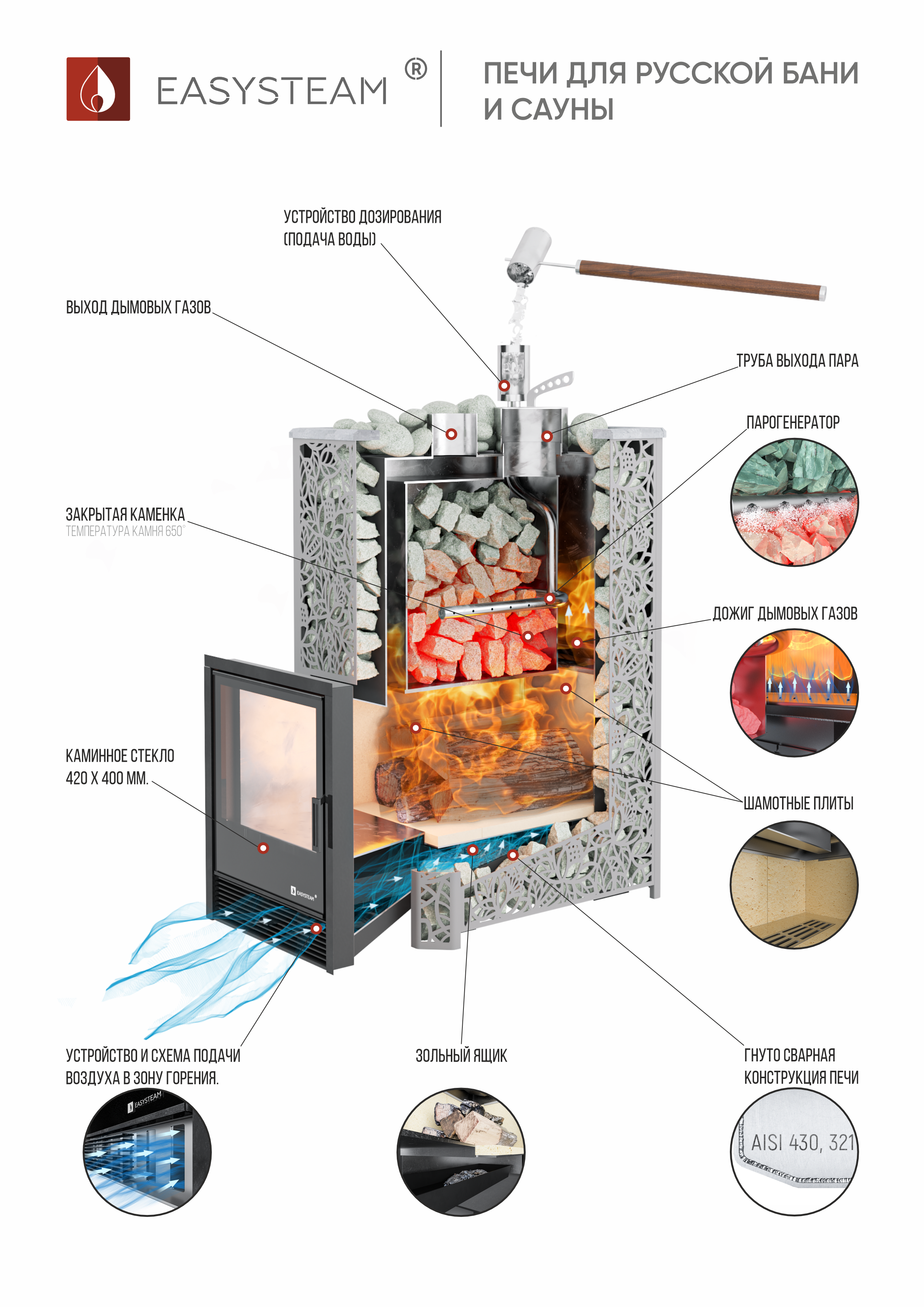 Практичные и доступные печи серии ЯЛТА из нержавеющей стали для бани и сауны, сочетающие в себе закрытую и открытую каменку со встроенным парогенератором и возможностью работы на газу. Универсальная и динамичная модель печи, подходит для любителей принимать банные процедуры при более высоких температурах 70-90 градусов. Режим русской бани достигается и удерживается в течение одного-двух парений. Широкий выбор вариантов облицовки позволит украсить интерьер банного комплекса лёгким резным кожухом-сеткой под закладку камнем или в ламелях из натурального природного камня: