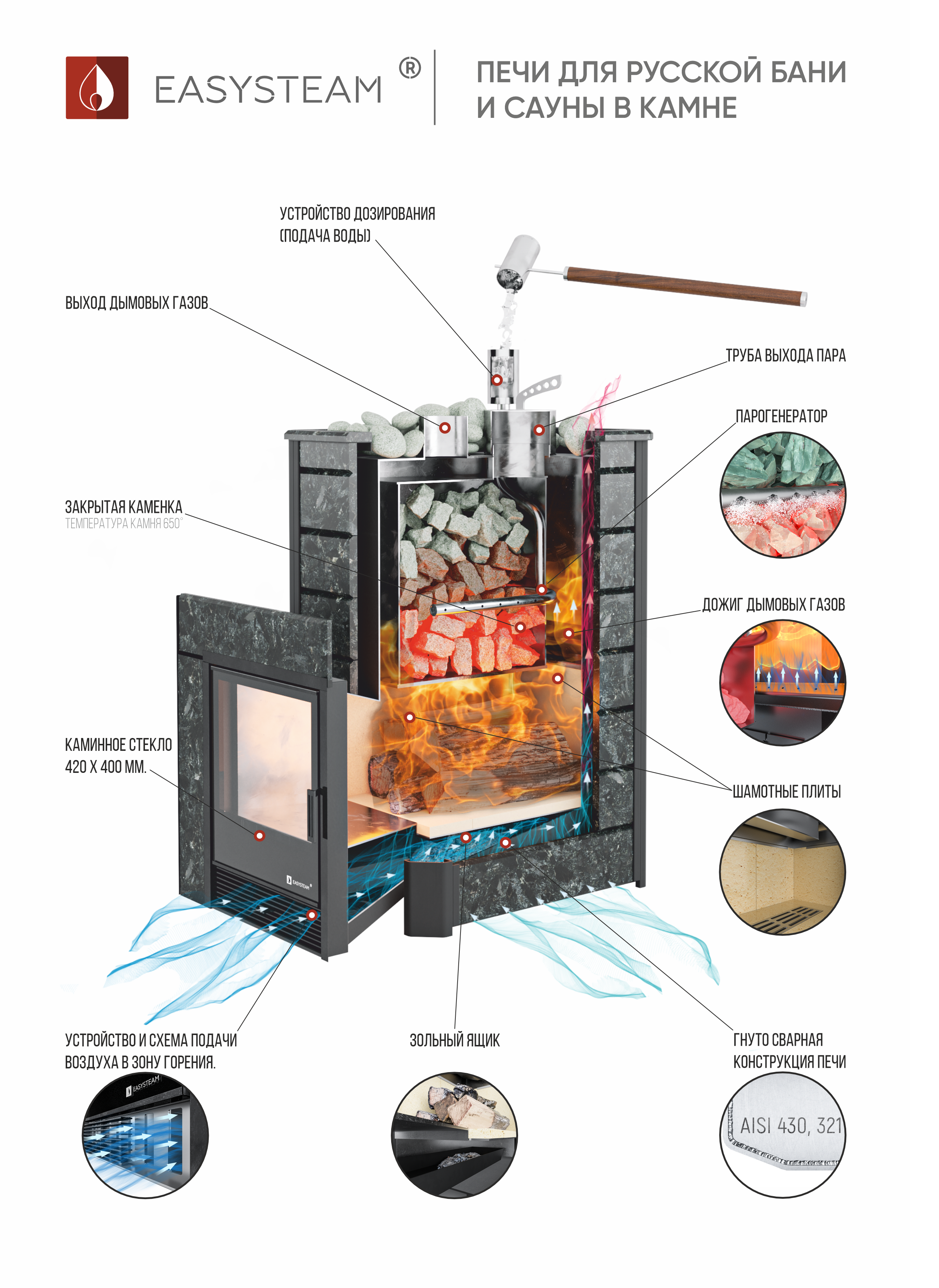 | Время вывода на режим русской бани (зима / лето) | 110 / 80 мин. |
