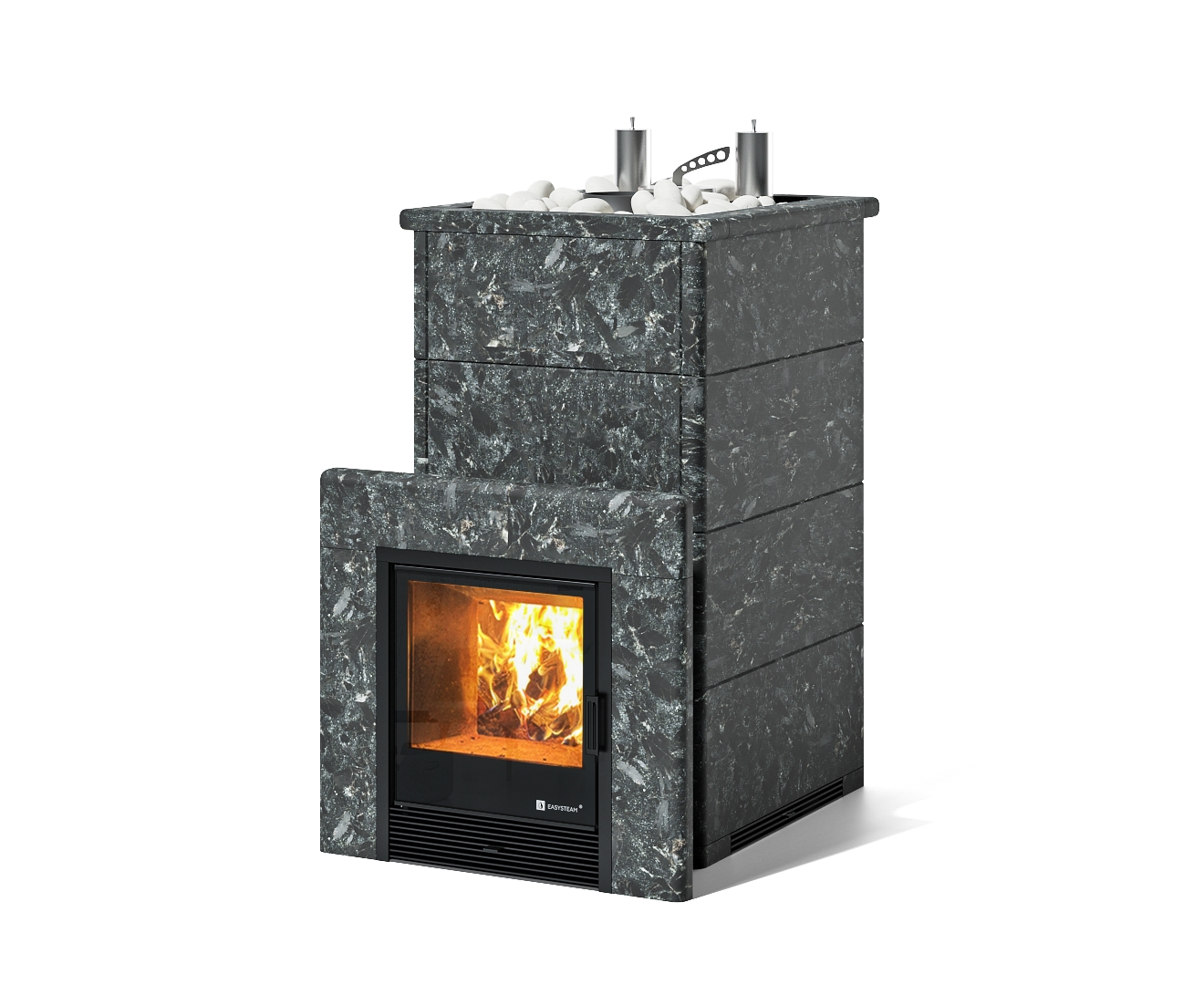 Печь оснащена съёмной закрытой каменкой, позволяющей разогревать находящиеся в ней камни до температуры 600 градусов