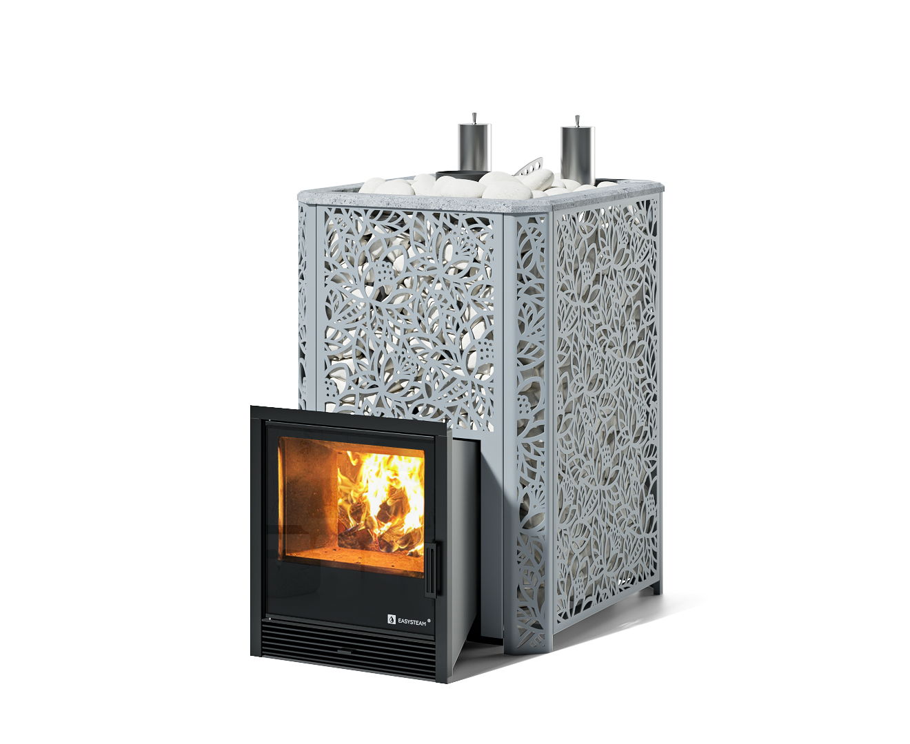 Особо прочная газо-дровяная печь постоянного действия, предназначенная для создания в парильном отделении общественной или коммерческой бани, условий русской бани и сауны, с присущим ей температурно-влажностным режимом. Резной кожух-сетка с открытой каменкой под закладку камней или с ламелями из природного камня позволяет сохранять выделяемое печью тепло и улавливать инфракрасное излучение. Ламели для кожуха могут быть изготовлен из четырёх видов природного камня: